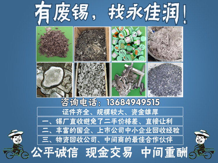永佳潤專業(yè)現(xiàn)金上門回收廢錫、錫渣、雜錫、鉛超標錫、波峰錫渣、含銀錫渣、錫渣回收,無鉛錫渣回收,含銀錫渣回收!波峰焊錫兌換同等質(zhì)量錫條,當您需要一個更安全更可靠的錫渣回收廠家時、永佳潤是您最佳的選擇!