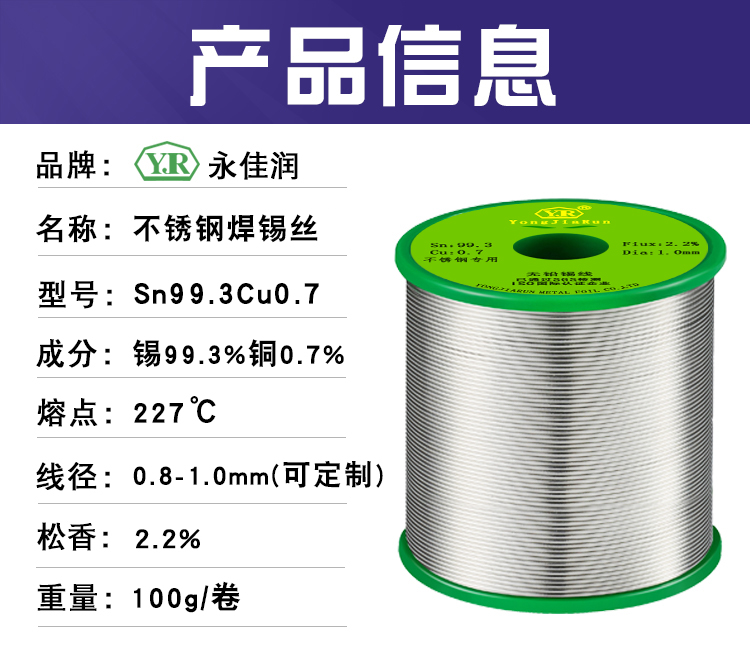 在環(huán)保與工業(yè)安全備受關(guān)注的今天,傳統(tǒng)含鉛焊錫因毒性強(qiáng)、污染重等問題逐漸被市場(chǎng)淘汰。深圳市永佳潤金屬有限公司憑借自主研發(fā)的專利無鉛不銹鋼錫線Sn99.3Cu0.7焊錫絲,以革命性技術(shù)開啟綠色焊接新篇章,為全球制造業(yè)注入可持續(xù)發(fā)展動(dòng)力!